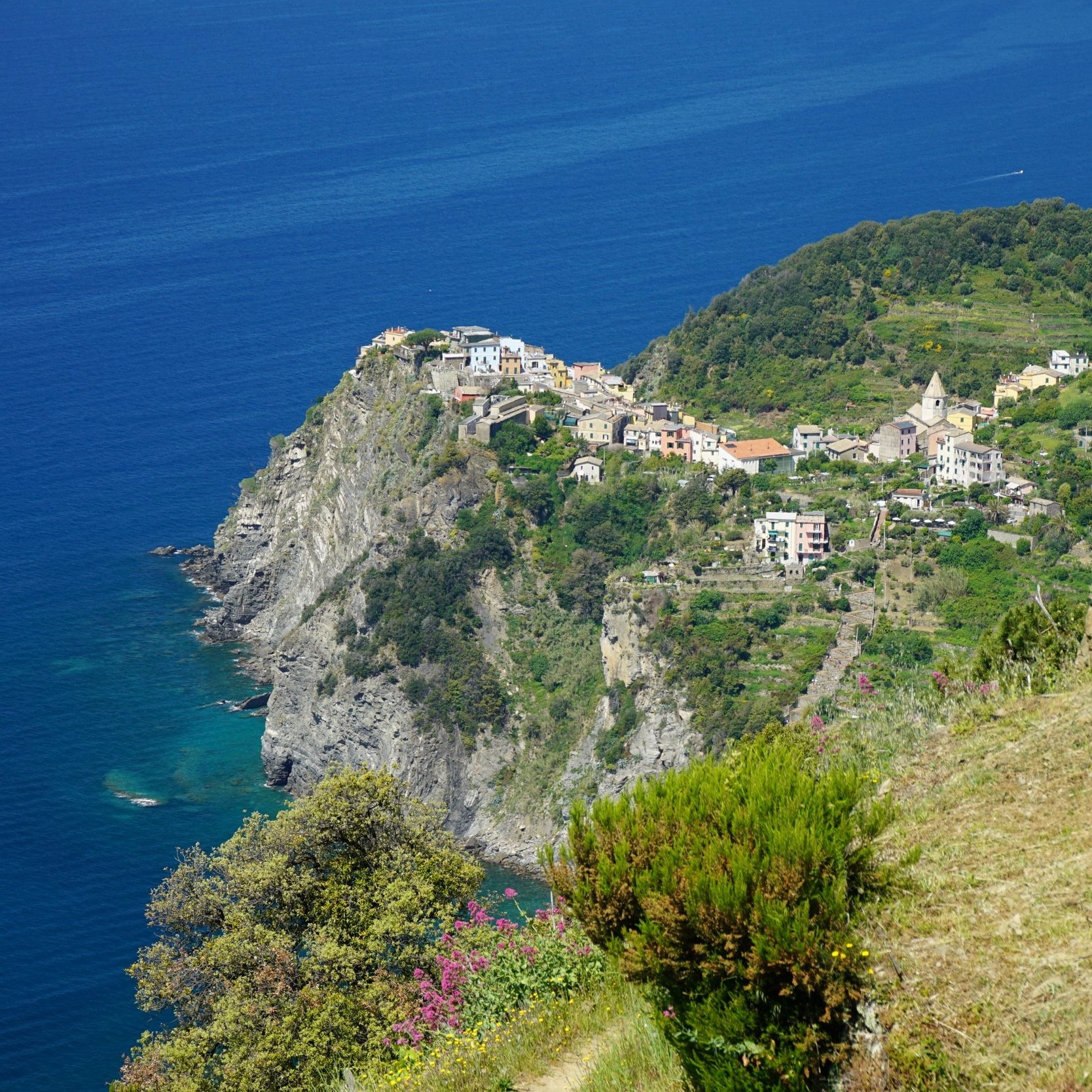 A short walk will bring you to a lovely spot in the hills above the Mediterranean Sea, where we will sip local Sciacchetrà wines.